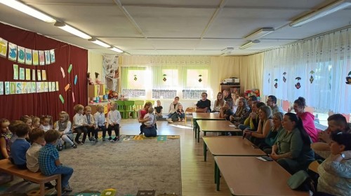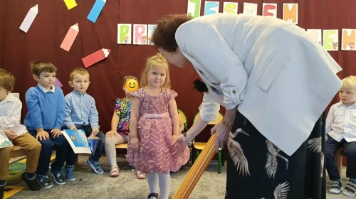 W naszym przedszkolu odbyło się pasowanie na przedszkolaka. Dzieci zaprezentowały piosenki, wiersz oraz tańce. Pani Dyrektor przy pomocy dużego symbolicznego ołówka pasowała maluszki na prawdziwych przedszkolaków.